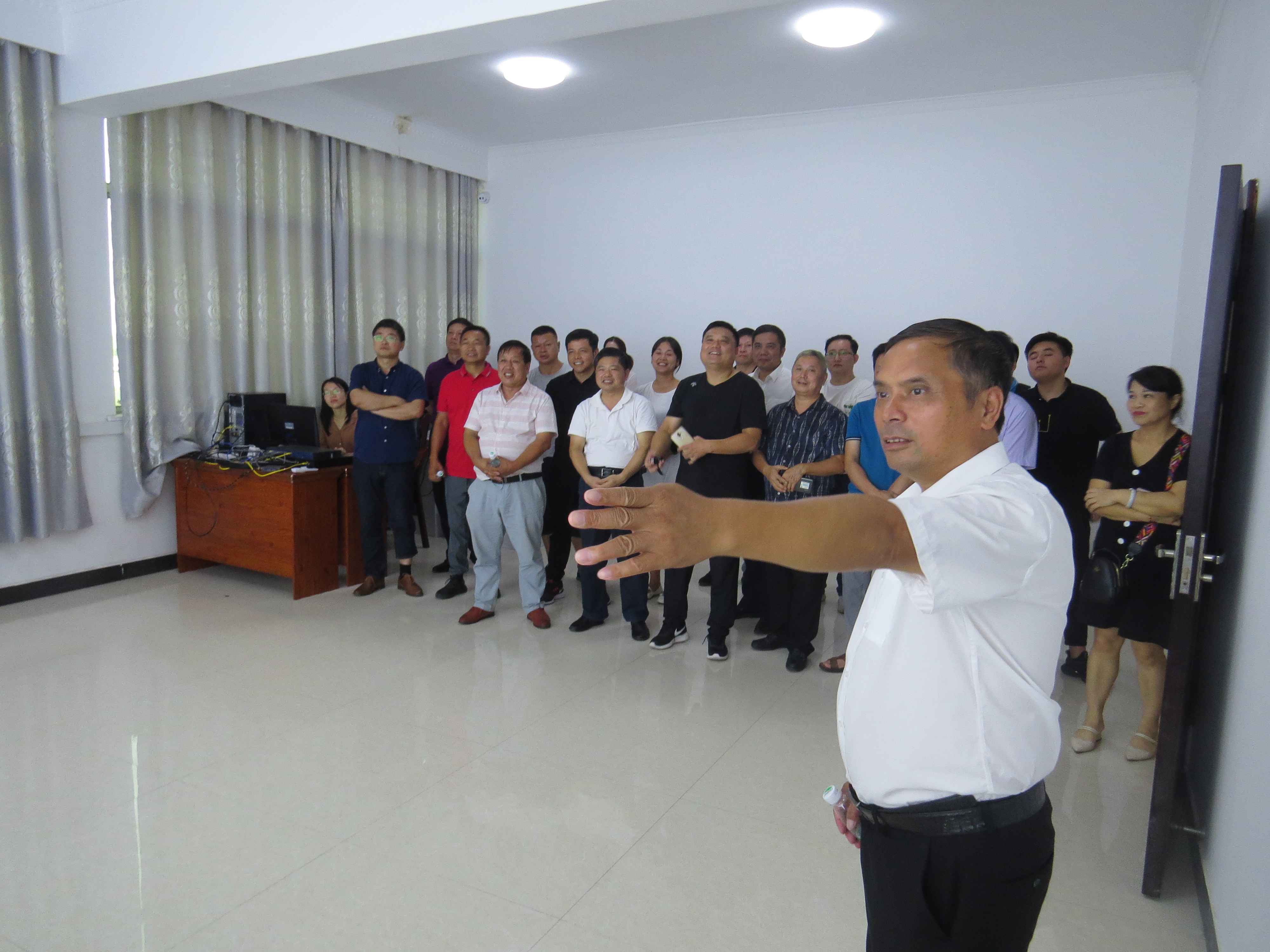 On the afternoon of September 7, 2019, Wu Quanshui, vice chairman of the Yingtan Municipal Committee of the Chinese people's political Consultative Conference and chairman of the Municipal Federation of Industry and Commerce, Zhang Hongtang, secretary of the Municipal Federation of Industry and Commerce and Secretary of the Municipal Federation of Industry and Commerce, led entrepreneurs to Jiangxi Baotai Group to hold a forum on "Do not forget the initial heart, and remember the mission." After the forum, they visited the industrial Internet of things and intelligent workshop.